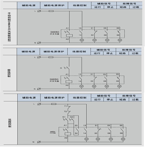 DHKBO控制與保護(hù)開關(guān)集成了傳統(tǒng)的斷路器(熔斷器)、接觸器、過載(或過壓、斷相、漏電等)保護(hù)繼電器、啟動(dòng)器、隔離器、電機(jī)綜合保護(hù)器等主要功能,具有遠(yuǎn)距離自動(dòng)控制和就地直接人力控制功能,具有面板顯示及機(jī)電信號(hào)報(bào)警功能,具有過壓保護(hù)、欠壓保護(hù)、斷相保護(hù)、欠流保護(hù)、電流不平衡保護(hù)、過流保護(hù)、堵轉(zhuǎn)保護(hù)、短路保護(hù)、漏電保護(hù)等功能,具有體積小、可靠性高、短路分?jǐn)嗄芰?qiáng)、飛弧距離短等優(yōu)點(diǎn)。